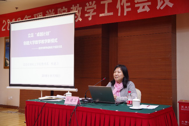 成果展示环节中,围绕“深化基础教学改革,提升人才培养质量”主题, 2017年北京市教学成果奖二等奖获得者、图学系杨谆教授结合自己十多年的教学实践,分享了图学系教学团队的建设、青年教师的培养以及教学成果的培育经验。数学系主任王利萍副教授总结了本科审核评估整改一年来数学系的教学工作,结合与校内外专家交流的心得,探讨了以高等数学为引领的数学课程群的后续改革思路。