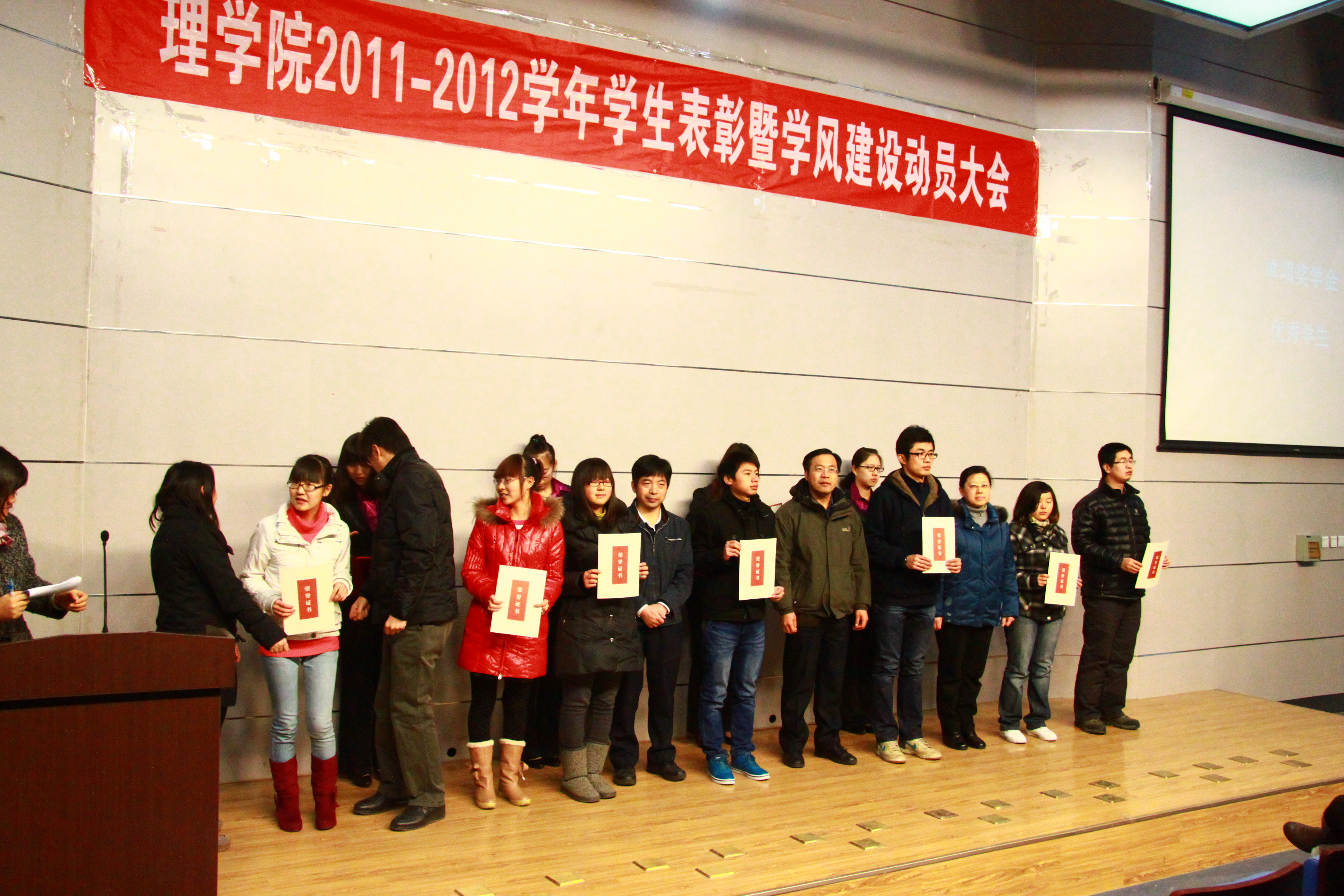 首先,由傅钰书记宣读《关于表彰248cc永利集团2011-2012学年获奖员工的决定》,并由学工部领导,248cc永利集团党政领导为获得国家、综合、单项,国家英语四级奖学金及学科竞赛,文体等奖项的120位员工和2个先进集体颁发荣誉证书。同学们满怀激动,报以热烈的掌声。