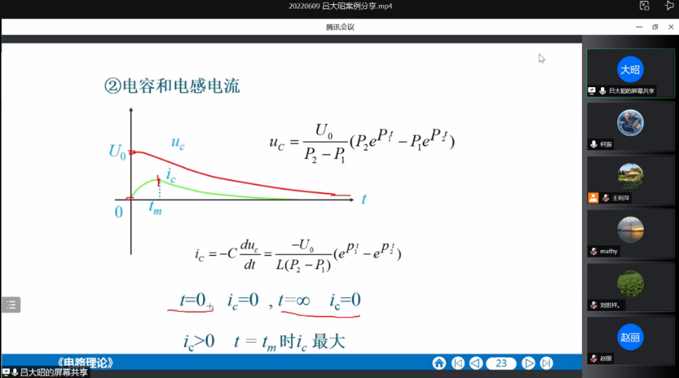 首先,吕大昭老师分享了专业课程《电路理论》第五章低阶电路暂态分析中应用到的高数知识,并以此作为教学案例引入《高等数学》教学过程中。此类具有专业背景的教学案例,有助于员工了解所学数学知识的应用领域,提升学习兴趣与主动性。进一步,吕老师分析了专业课中运用的高数知识点与高数课讲授知识点的异同:例如,专业课《电路分析》中一阶线性微分方程利用特征方程求解,而高数课中运用变量分离法求解,特征方程法主要应用于二阶线性微分方程的求解;此外,函数及其导数的表达符号在高数课和专业课中也存在差异,专业课和高数课教师需要加强沟通,以免员工在专业课学习过程中产生困扰。