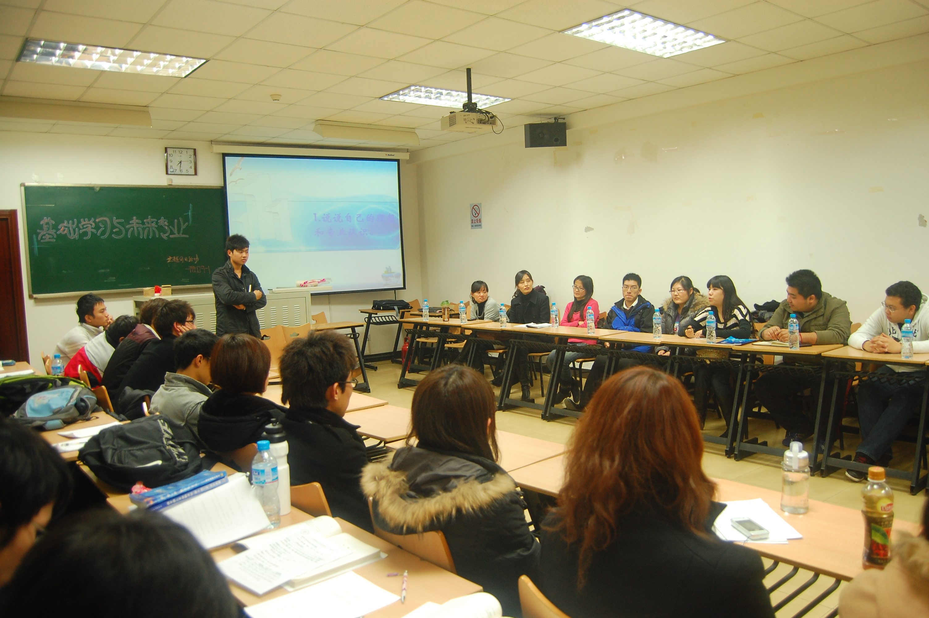 会议主要针对同学对自己所学专业的盲点及进入大学以来的生活学习上的困惑这两个问题进行了详细充分的解答。会上同学们提出了很多与专业知识有关的问题,对此学长们也进行了充分的回答。活动在和谐轻松的气氛下进行着。