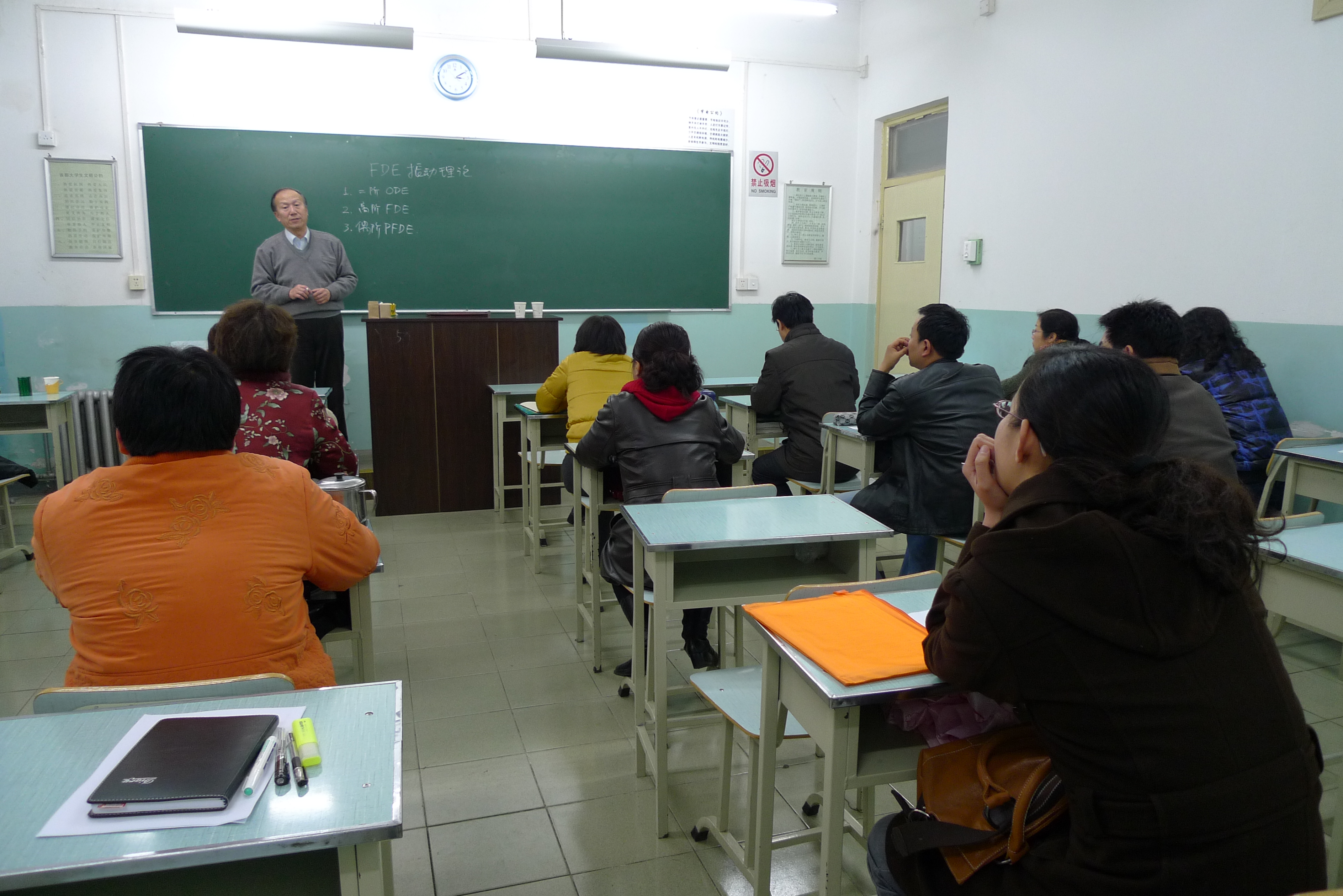 为提高教师的科研能力,逐步形成公司理学学科的科研团队和研究方向,248cc永利集团特邀请中国科学院数学与系统科学研究院研究员、国内微分方程稳定性和振动理论方向著名学者俞元洪教授开办微分方程方向的讨论班。讨论班于3月30日下午在校本部教一楼进行了第一次活动,248cc永利集团部分教师参加了讨论。校领导宋国华副董事长,248cc永利集团崔景安经理,傅钰书记,代西武副经理等出席祝贺,鼓励大家珍惜此次机会有效提高科研水平。