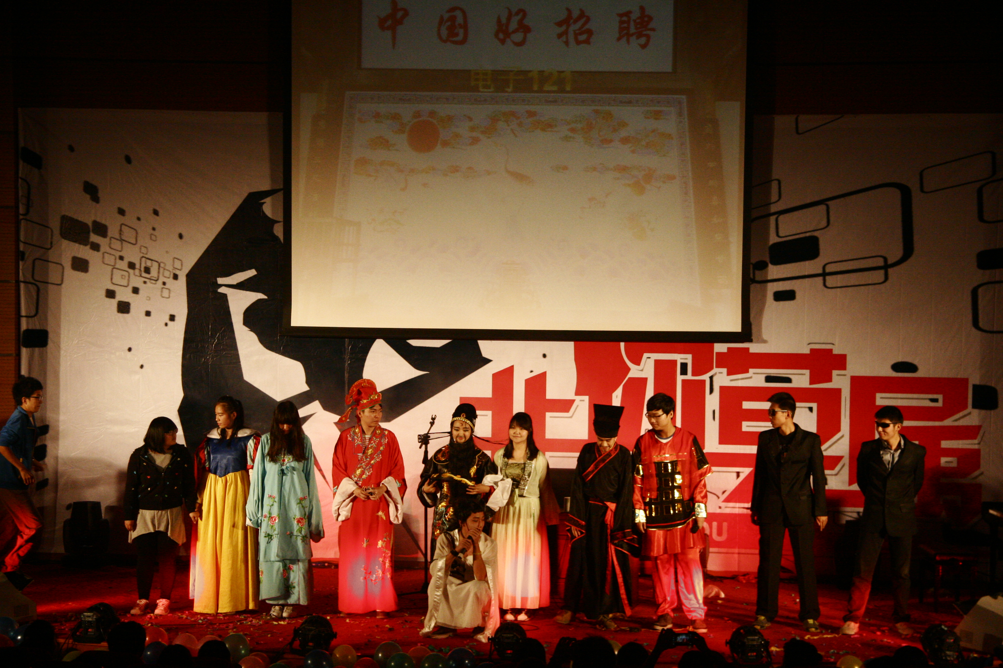 同时,在紧张的竞聘过程中,还穿插了各式各样的文艺表演节目来调节气氛,种类多样、精彩纷呈。纳菲利姆乐队主唱带来的《无地自容》,为晚会拉开了序幕,248cc永利集团街舞社特邀北京工商大学的GSMY街舞社社长带来的精彩街舞表演,动感十足,活力四射,现场掌声不断。电子121班同学们准备的话剧《中国好招聘》,带领大家一起穿越古今中外,语言诙谐幽默,寓意深刻;《经典相声》中的相扑决斗创意表演,惊喜笑料不断。