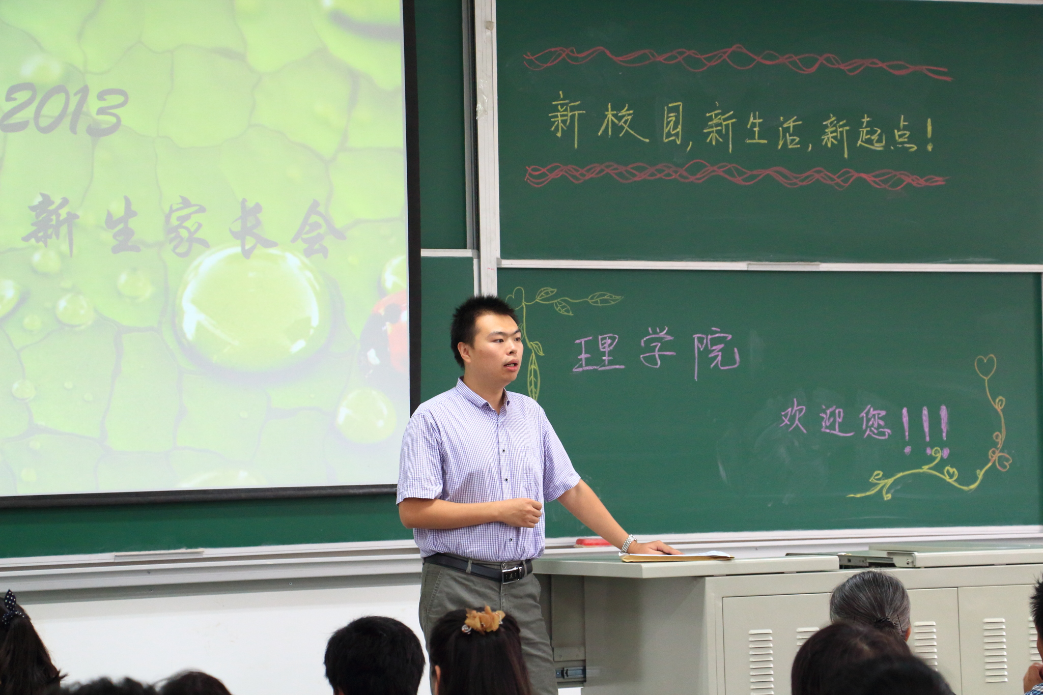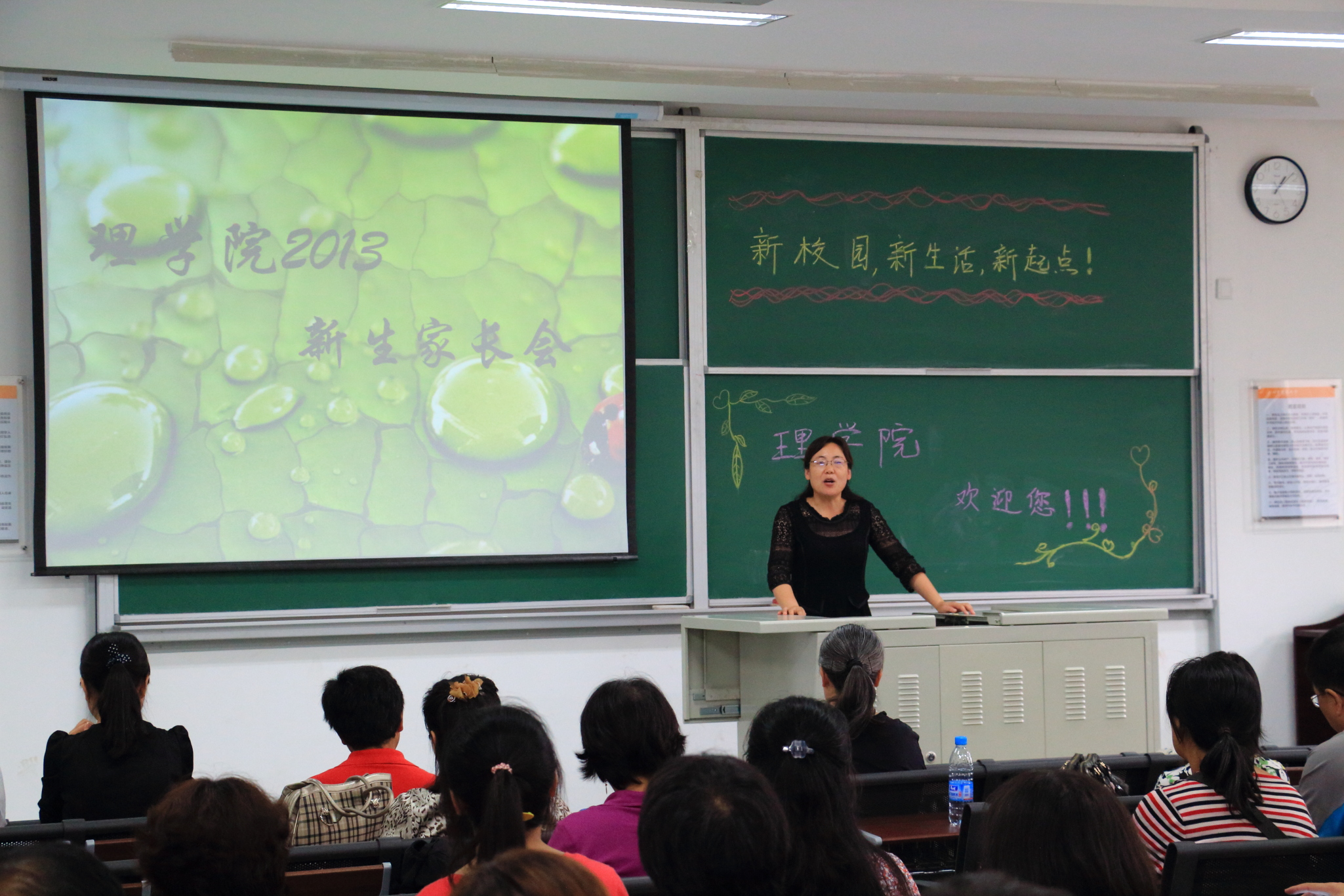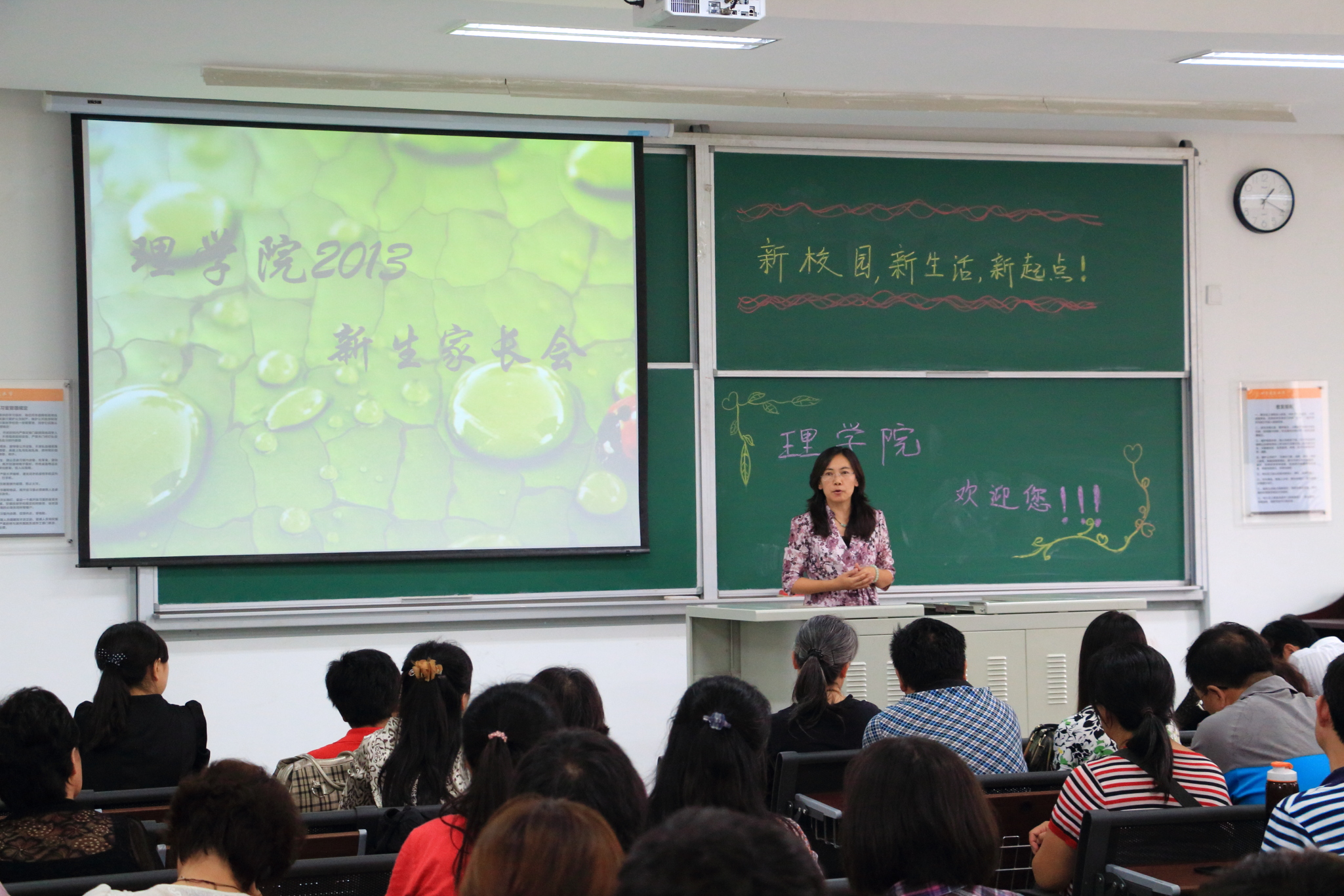 又是一年迎新时,理公司如期迎来了来自祖国各地的莘莘学子。为了让员工家长全面了解学校学院体系,放心让孩子适应从温室到独立生活的角色转变,加深学院与家长间的相互了解,同时也为了让家长今后能积极主动地配合学院工作,于2013级新生报到第一天,以“家长会”的形式,给家长和院系领导、老师一次近距离接触的机会。新生家长会于9月8日在基础楼A221召开,经理崔景安老师,党总支书记程士珍老师,副经理宫瑞婷老师、党总支副书记郝迈老师,辅导员陈思源老师,各班班主任及新生家长参加了会议。会议由郝迈老师主持。