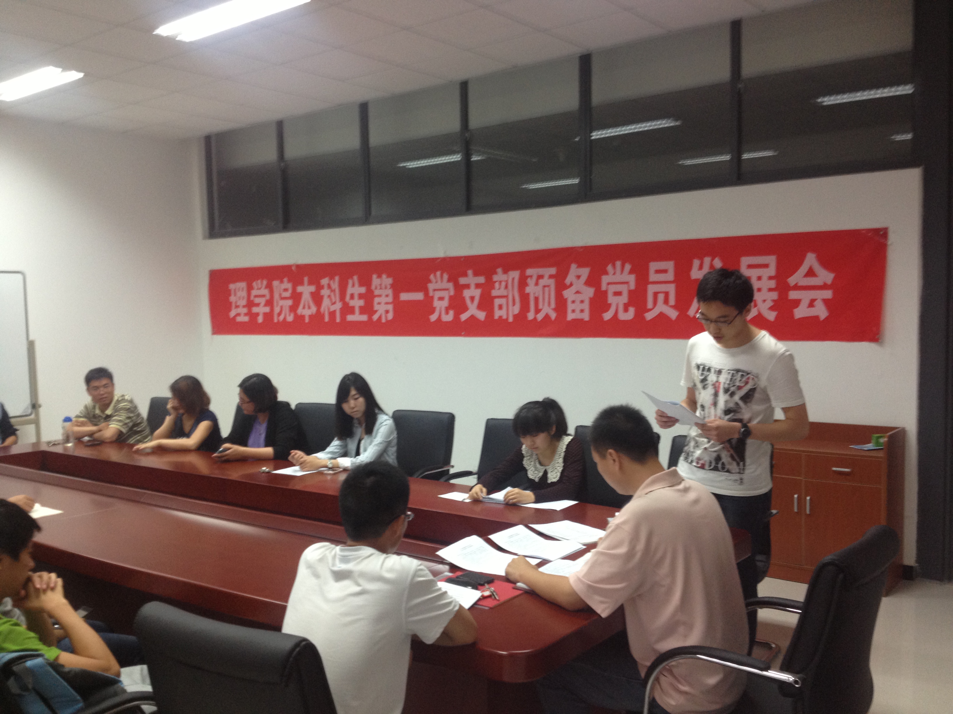 会议开始,全体起立齐唱国际歌,随后信101班的刘子琨同学,信121班邓青青同学,实验121班的李晓洁同学作为本次发展对象,宣读了入党志愿书,就自己对党的忠贞信仰、心路历程、学习生活等各方面做了深刻的剖析。在座的党员、预备党员们就他们在学校的表现提出了表扬和中肯的意见,希望他们能认清自己、扬长避短,发挥在同学群体中的模范带头作用,与其他同学一起共同进步。最后,在党员的投票下,三位同学全票通过光荣地成为了一名中共预备党员。
