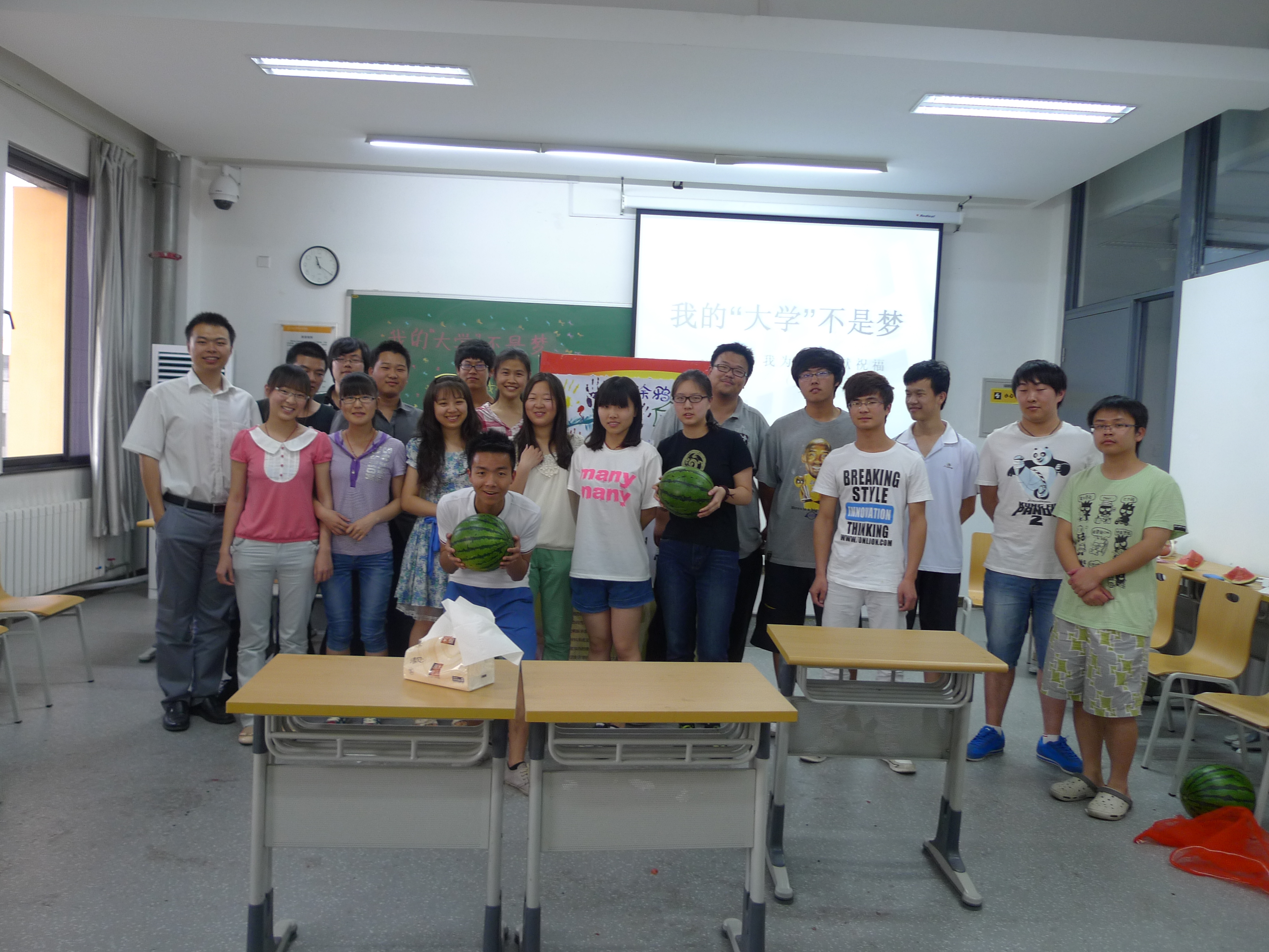 信121班邓青青同学主持了活动。此次活动采取了别开生面的方式,大家在一片欢声笑语中进行吃西瓜比赛,每次晋级选手率先在涂鸦板上为建大送去祝福。通过比赛同学们不仅加强了各个入党积极分子的交流,增强了大家的友谊,同时为建大送去我们美好的祝福。接下来全体参加活动的人员进行“我为建大送祝福”涂鸦活动,多色水彩勾勒出我们对建大未来的憧憬,各种手印传递了我们对建大美好的祝愿。同学们的笑脸写满幸福与甜蜜,写满骄傲与自豪。最后的合影将幸福定格在那一刻,同时也为这次活动划上了圆满的句号。