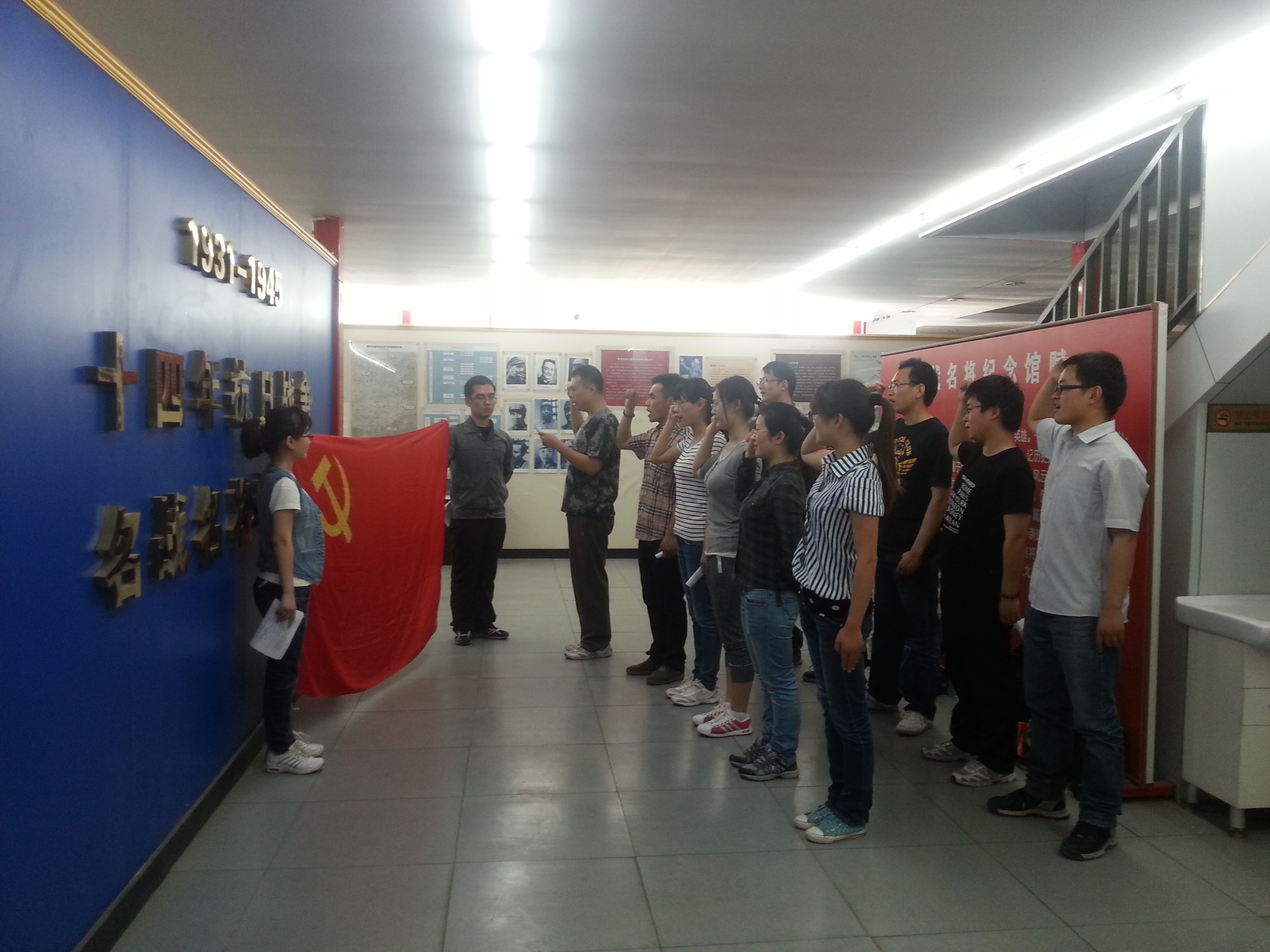 2014年5月18号星期日,248cc永利集团全体研究生党员及部分入党积极分子在支部书记郝迈老师的带领下来到了位于香山脚下的抗战名将纪忥馆。在纪忥墙前,11位研究生党员进行了庄严的入党宣誓。