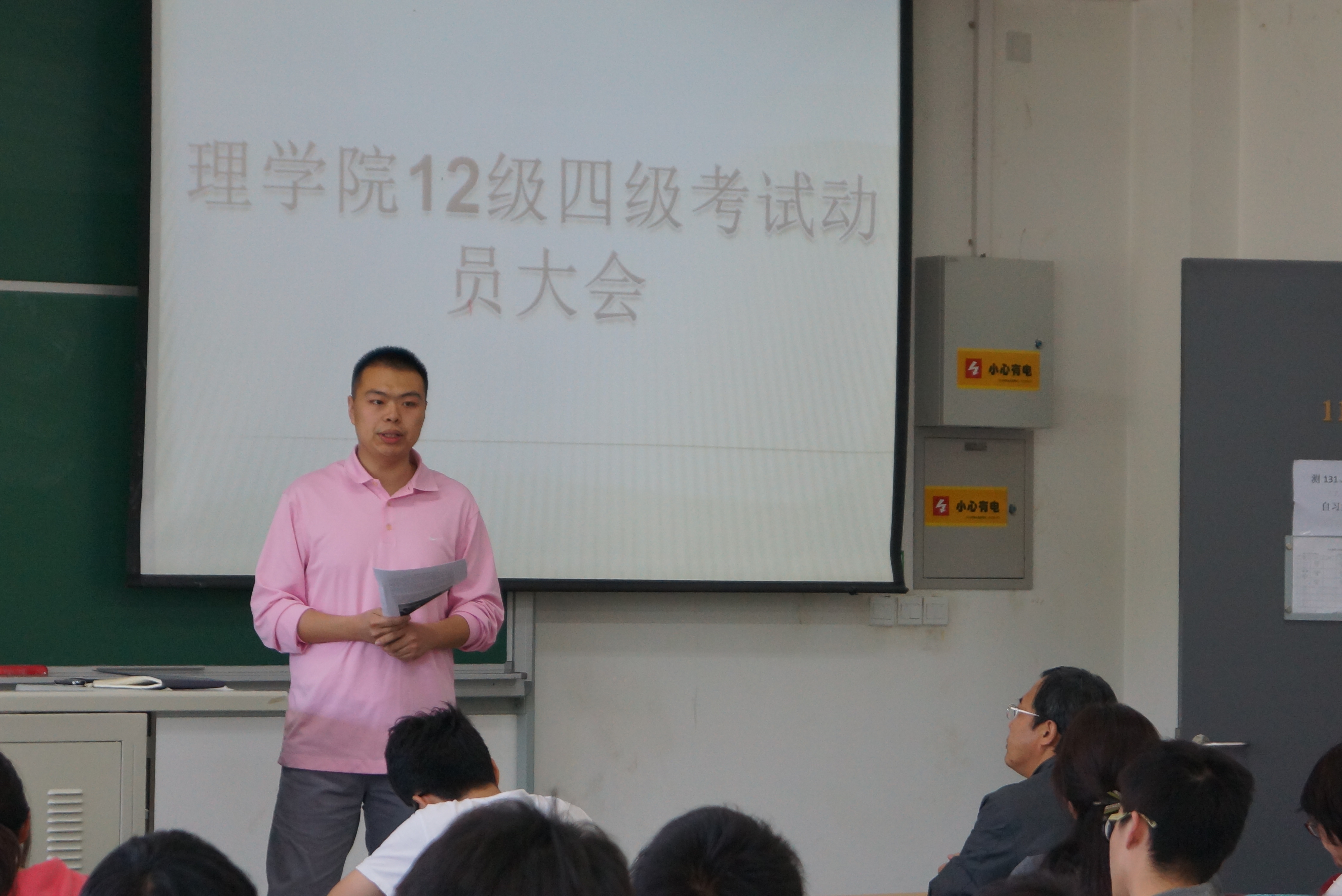 2014年5月12日下午,248cc永利集团在基A116举行了12级四级考试动员大会。248cc永利集团经理崔景安、党总支书记程士珍、副经理梁昔明,副经理宫瑞婷、党总支副书记郝迈、12级班级导师、12级英语教师和12级全体员工参加了本次活动。动员会由郝迈主持。