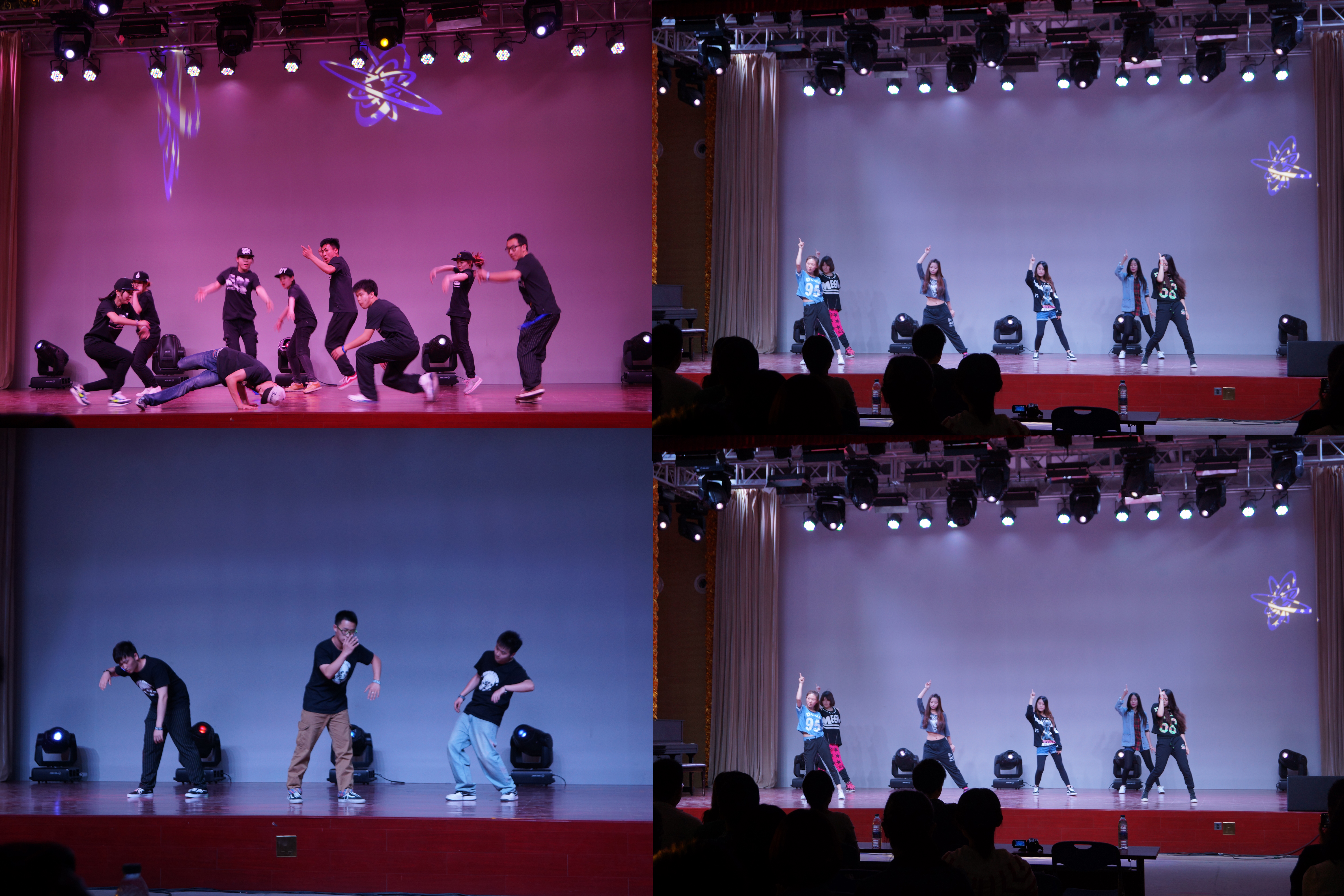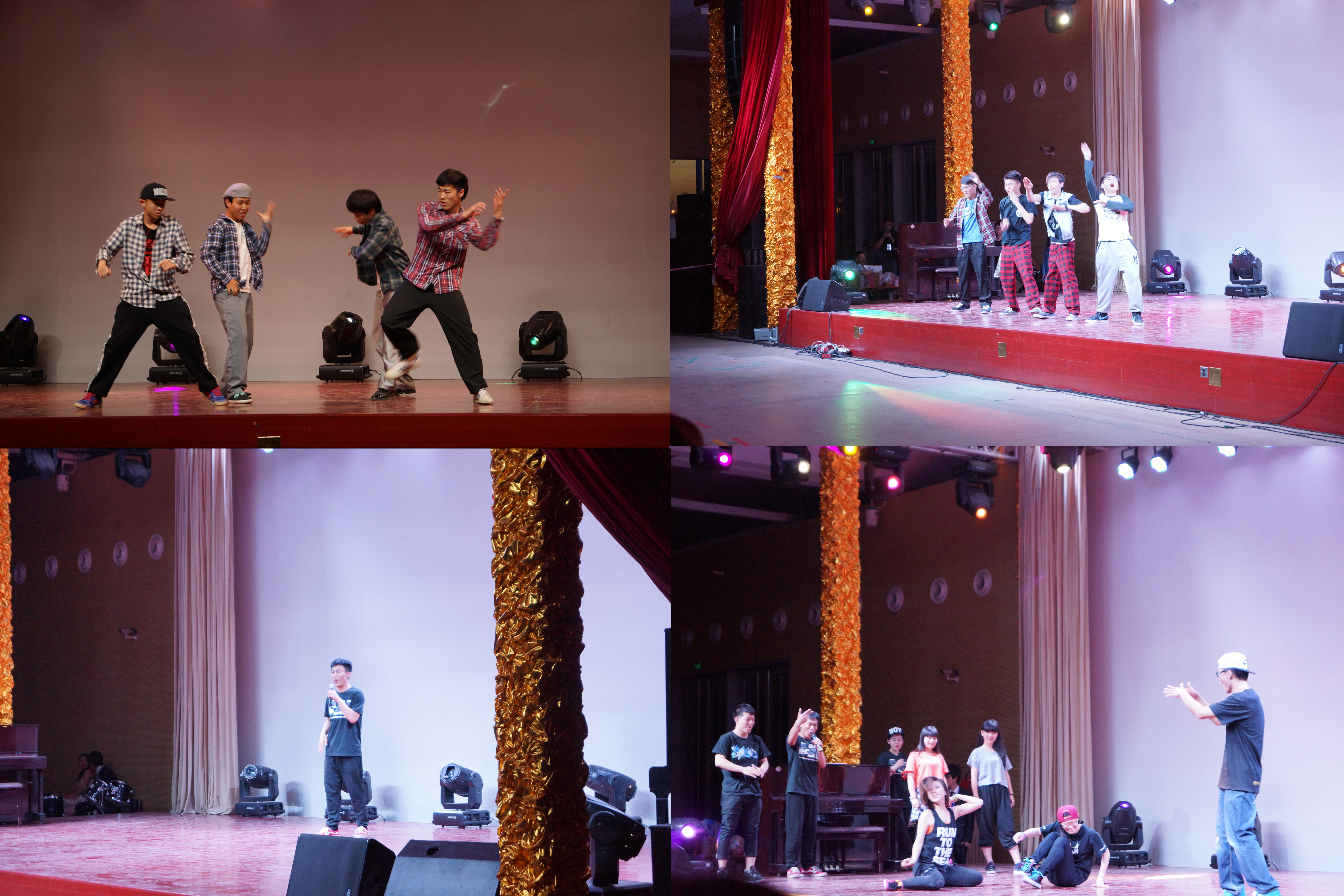 舞会在建大觅音suger daddy乐队的动情演唱中拉开帷幕。开场舞—来自建大BTD街舞社的表演点燃了观众的激情,动感的音乐,明快的节奏把同学们带入了一个奇妙的世界。随后,石油化工,首经贸M PLEX ,北工商GSMY、商嘻散人,北京印刷学院IN舞道,亨利大王等团队的CREW表演,B-box说唱表演更是将舞会的气氛推向高潮。观众们跟着音乐挥舞着双手,感受街舞带来的震撼效果。欢呼声,尖叫声此起彼伏。在观众热情的感染下,演员们甚至现场教同学们跳起街舞,胆大的观众虽然跳的不专业但也学的有模有样,场内气氛轻松愉快。三轮车轮斗舞穿插其中,舞者各自展示自己的绝活,翻滚,倒立,旋转,弹跳,让观众大饱眼福,几轮斗舞下来大家意犹未尽。由黑人说唱歌手带来的歌曲《Love the way you lie》,《Counting Stars》更让大家在听觉上耳目一新。在观众的欢呼与不舍中,舞会成功落幕。