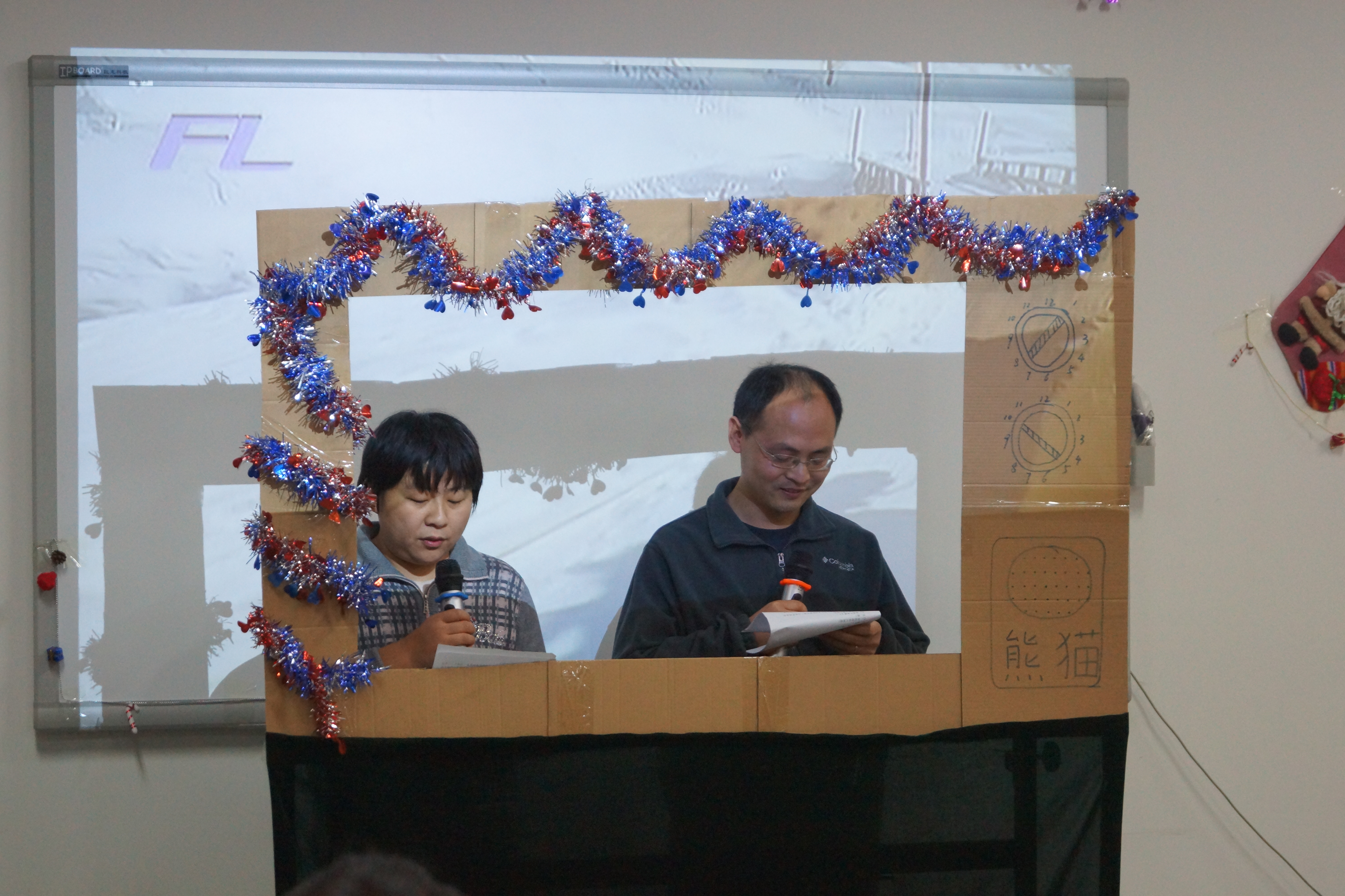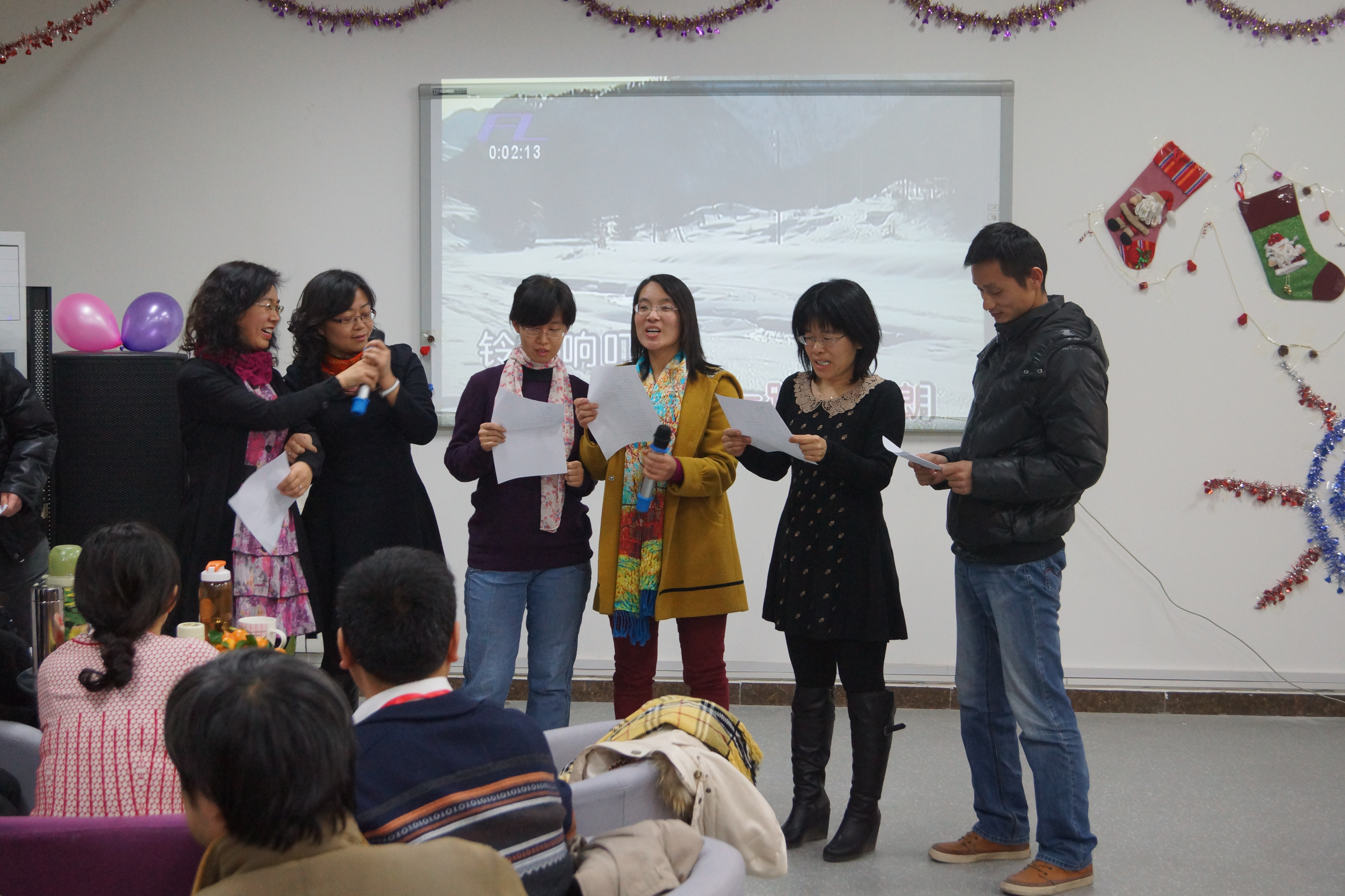 12月24日,在248cc永利集团新投入使用的教工之家,开展了学院岁末迎新年联欢会。各个工会小组的老师们带来了丰富多彩的节目,充分展示了大家多方面的才艺。数学工会小组自创的新闻联播和物理工会小组自编的三句半表演,将社会热点和学校发展以轻松幽默,诙谐调侃的形式展示,包袱不断,掀起会场一阵阵的笑声和掌声;力学工会小组和制图工会小组带来了互动游戏,生动有趣,现场老师积极参与,惊喜不断;信计工会小组放映了一段提前录制剪辑好的《萌娃贺新年》的视频,各位老师的宝宝们或歌或舞,萌态十足,配上恰到好处的字幕符号,看起来就像在收看现在热播的《爸爸去哪儿》 一样。节目表演中还穿插进行了现场抽奖、乒乓球、羽毛球羽比赛的颁奖,获奖的老师们兴高采烈,现场掀起一个又一个小高潮。联欢会给寒冷的冬季增添了一把火,给平淡的生活底板增添了许多亮色,联欢会在数学系工会合唱《明天更美好》中结束!