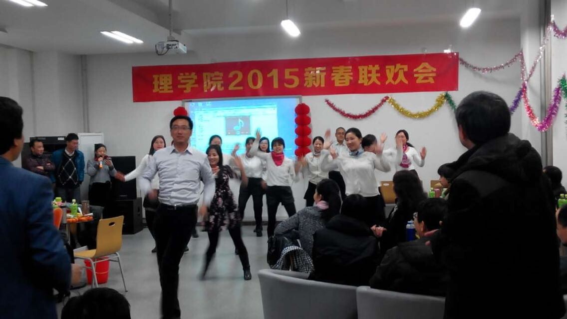 联欢会是由学院5个工会小组自编自导自演,首先物理工会小组带来地欢快舞蹈《小苹果》拉开了序幕,接着,数学工会小组编排的小品《上课请别开手机》,绘声绘色、形象生动、活灵活现及其夸张地把课上员工使用手机现象展现出来,将活动气氛推向高潮。其他各工会小组毫不示弱,信计工会小组《北京之夜》、制图工会小组《最炫民族风》,载歌载舞,掌声不断;主持人也不忘展现才华将改编的一首《为自己点赞》,唱出了2014年老师们工作和生活的苦与乐;力学工会小组手语演唱《感恩的心》和《颁奖》震撼全场,笑点频出;张士杰 、刘志强二位老师合作说相声,爆了冷门,他们二人将说学逗唱演绎得淋漓尽致,张士杰用评剧演唱手法道出女人的心酸,刘志强捧哏逗哏恰到好处烘托,赢得大家阵阵掌声。中间穿插互动游戏和抽奖环节,使整个联欢会现场洋溢着欢乐、祥和以及如春天般的温暖气息。最后,联欢会在数学工会小组《相亲相爱一家人》的动人歌声中圆满结束。