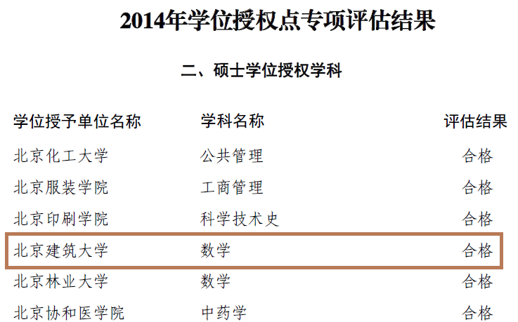 2016年3月25日教育部印发《国务院学位委员会关于下达2014年学位授权点专项评估结果及处理意见的通知》(学位〔2016〕5号), 公司接受评估的数学硕士学位授权一级学科点评估结果为“合格”。