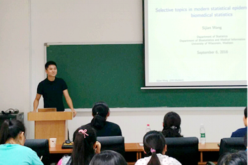 9月6日上午,美国威斯康辛大学麦迪逊分校的生物统计领域的知名教授王思鉴来248cc永利集团作学术报告。报告会由牟唯嫣老师主持,崔景安经理、部分教师和研究生20余人参会。