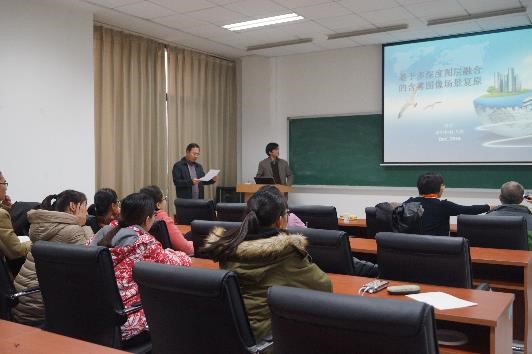 田教授首先作了题为“基于多深度图层融合的含雾图像场景复原”的学术报告,介绍了他们通过把复原的图像以及源图像经行比对,从清晰度与明暗度两方面进行入手,做到了很好的复原效果,展示了含雾场景复原研究的最新成果。 接着,参会师生与田教授进行了热烈的讨论,大家对相关问题进行了广泛的交流。田教授的研究内容为参会师生开拓了研究视野,拓宽了研究思路。