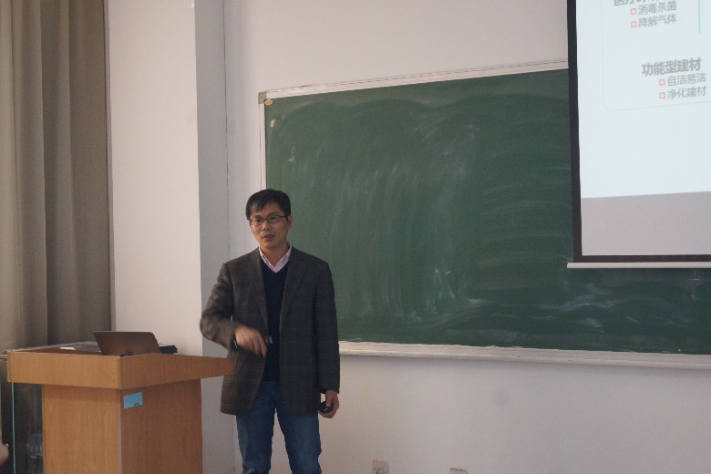 曹教授首先作了题为“二氧化钛光催化材料:规模化制备和应用研究”的学术报告,他从环境污染引入光催化技术开始,介绍了光催化剂——纳米尺度的颗粒的作用,以及实现可见光响应纳米