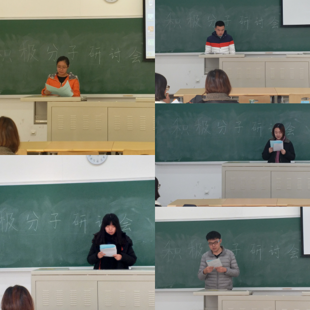 2017年11月21日,中午12:30 在基C-201 进行第60期积极分子研讨会。研讨会围绕中共十九大报告以及交流收获体会展开。参与研讨会的有辅导员王梦鸽老师以及全体入党积极分子。
