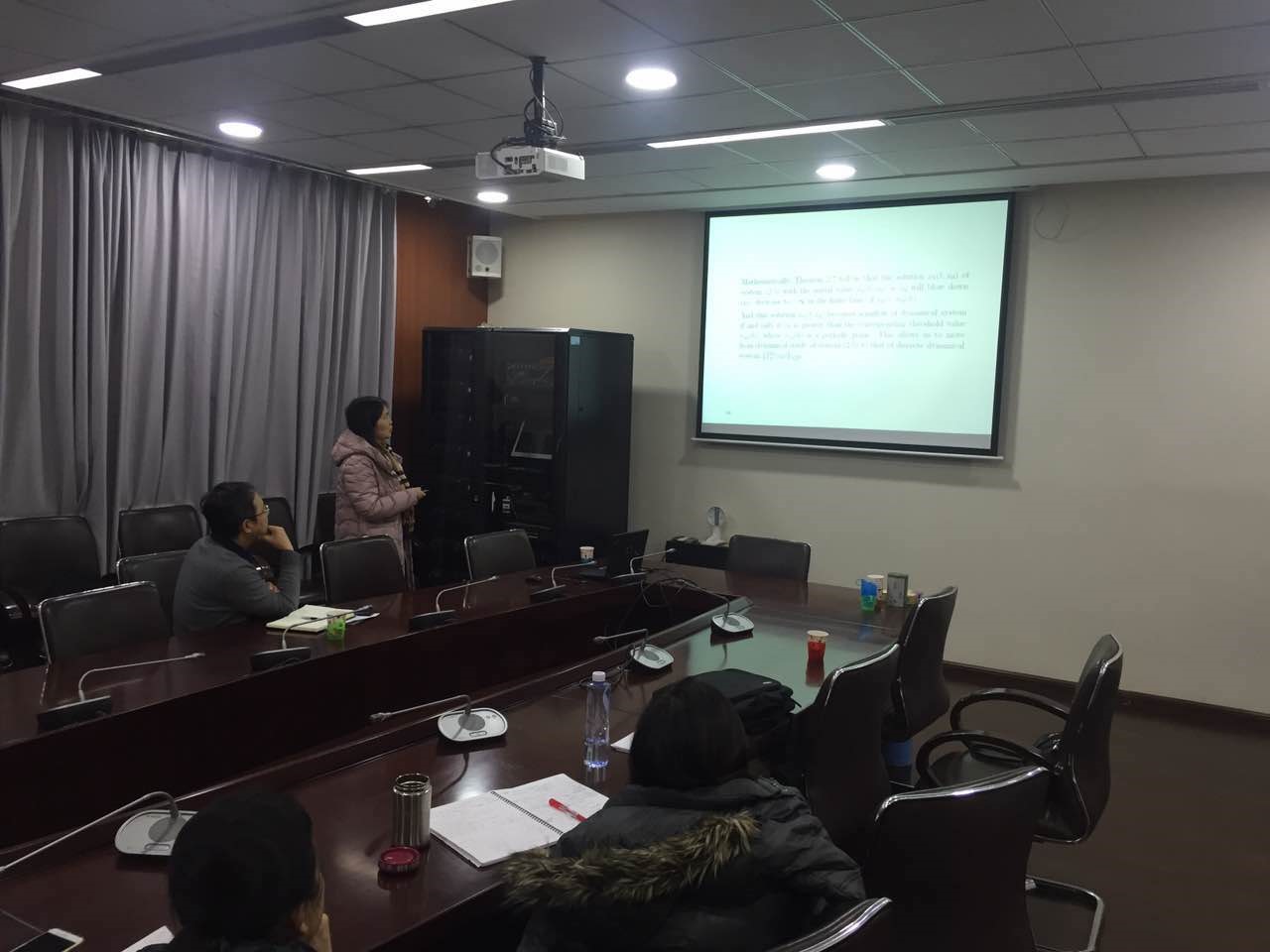 2018年1月29日,上海交通大学数学科学学院副经理、博士生导师、国家杰出青年基金获得者肖冬梅教授应邀到248cc永利集团进行学术交流,部分教师和研究生参会,248cc永利集团经理崔景安主持了会议。