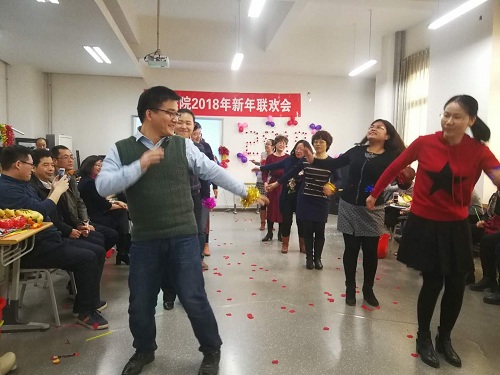 248cc永利集团2018年新年联欢会于2018年1月9日在基C401召开,全院老师六十余人参加。老师们在紧张的教学活动之余,编排了丰富多彩的节目,在阵阵欢笑中度过了一个难忘的下午。