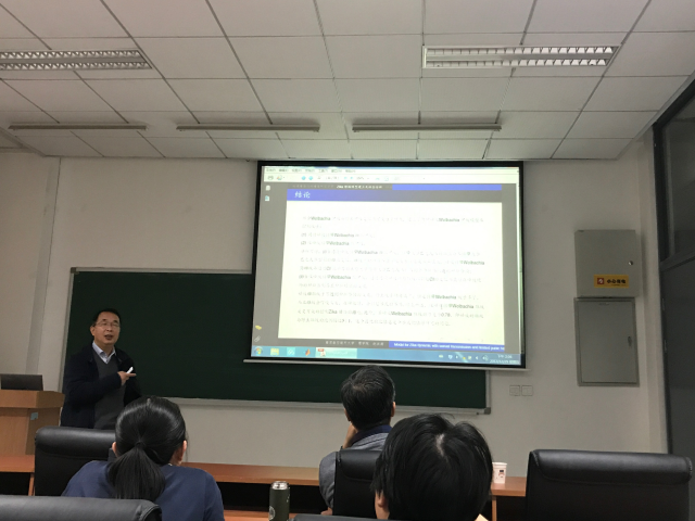 赵教授首先作了题为“Model for Zika dynamic with sexual transmission and limited pubic health resources”的学术报告。报告中指出,由蚊媒传播与性传播的Zika,以及通过吸毒、性传播(主要是男同)的艾滋病,近几年已经成为了生物数学领域的研究热点。赵教授介绍了蚊媒传播的背景以及预防该传播途径的措施,通过已建立的数学模型阐述了释放携带Wolbachia 雄蚊是最有效的控制Zika传播的方法。随后,针对数值仿真中的数据和动力系统全局稳定性的问题,赵教授和与会师生展开了热烈讨论。