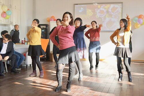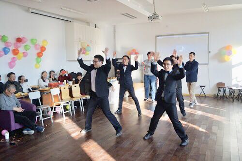 最后,崔景安经理和田芳老师带来了情歌对唱《莫斯科郊外的晚上》,教师们更是在美妙的歌声中,自发上台跳起了交谊舞,联欢会在载歌载舞中圆满谢幕。