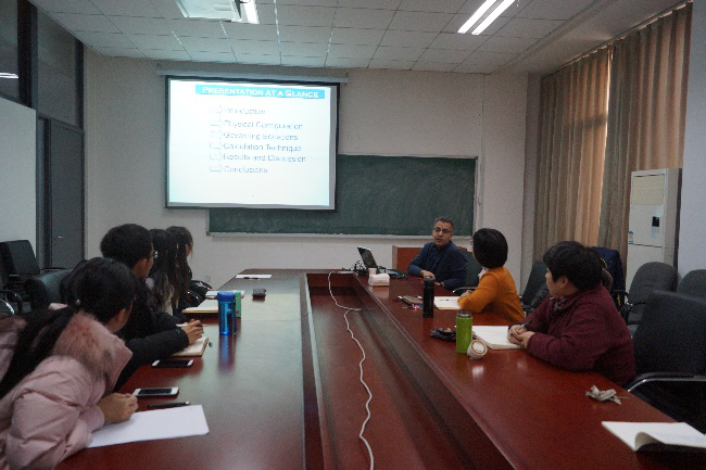 另外,Mohammad 教授与张艳教授带领的偏微分方程与应用科研团队进行了深层次的交流。一方面他耐心地解答了师生提出的问题,与大家进行了热烈的讨论;另一方面他认真聆听了研究生们的工作汇报,对他们的工作给予了肯定,同时提出了一些改进建议。