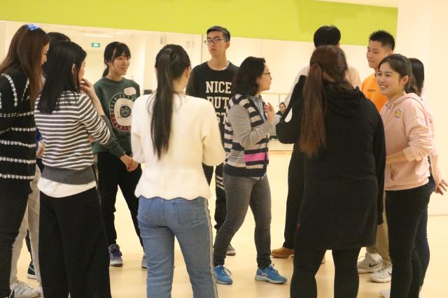 大家分成三组,组内熟识,不同于流水线般千篇一律的姓名爱好专业介绍,每个人在介绍自己的时候要准备一个动作,介绍过后,整个组的人都要一起重复这个动作,并且大声喊出这个同学的名字。每个同学都很享受这不一样的破冰。同学们增进了对彼此的认识和了解,以后的工作可以更好的配合。