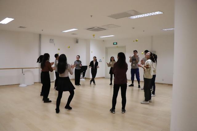 大家按照分组,每组围成一个圆圈,每个人手中有一个球,在往右边扔出球的同时拍手,并接住左边同学扔来的球。在这个活动中,充分考察大家的协作能力,同学们表现出了高涨的热情,虽然有的组中间很多次掉落,但大家没有人埋怨,而是更加努力的相互鼓励,共同克服困难。