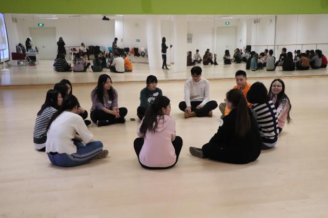 大家自由行走于活动室内,在听到培训师喊到“鲨鱼来了”后,迅速跳进离自己最近的圈内,每过一轮都会减少一个圈,只剩最后一个圈的时候,大家一同跳进了同一个圈内,互相紧紧围绕,简单的肢体互助让大家放下了一开始的尴尬,认真融入这个游戏。