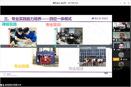 首先,信息与计算科学专业王恒友和电子信息科学与技术专业崔慧娟分别介绍两个专业在线招生直播初步方案,学院领导班子和各专业老师从专业培养目标、专业特色以及面向行业需求突出培养特色等方面给出针对性修改意见。副经理张长伦重申了专业招生直播的基本原则,对下一步的修改工作明确具体要求。