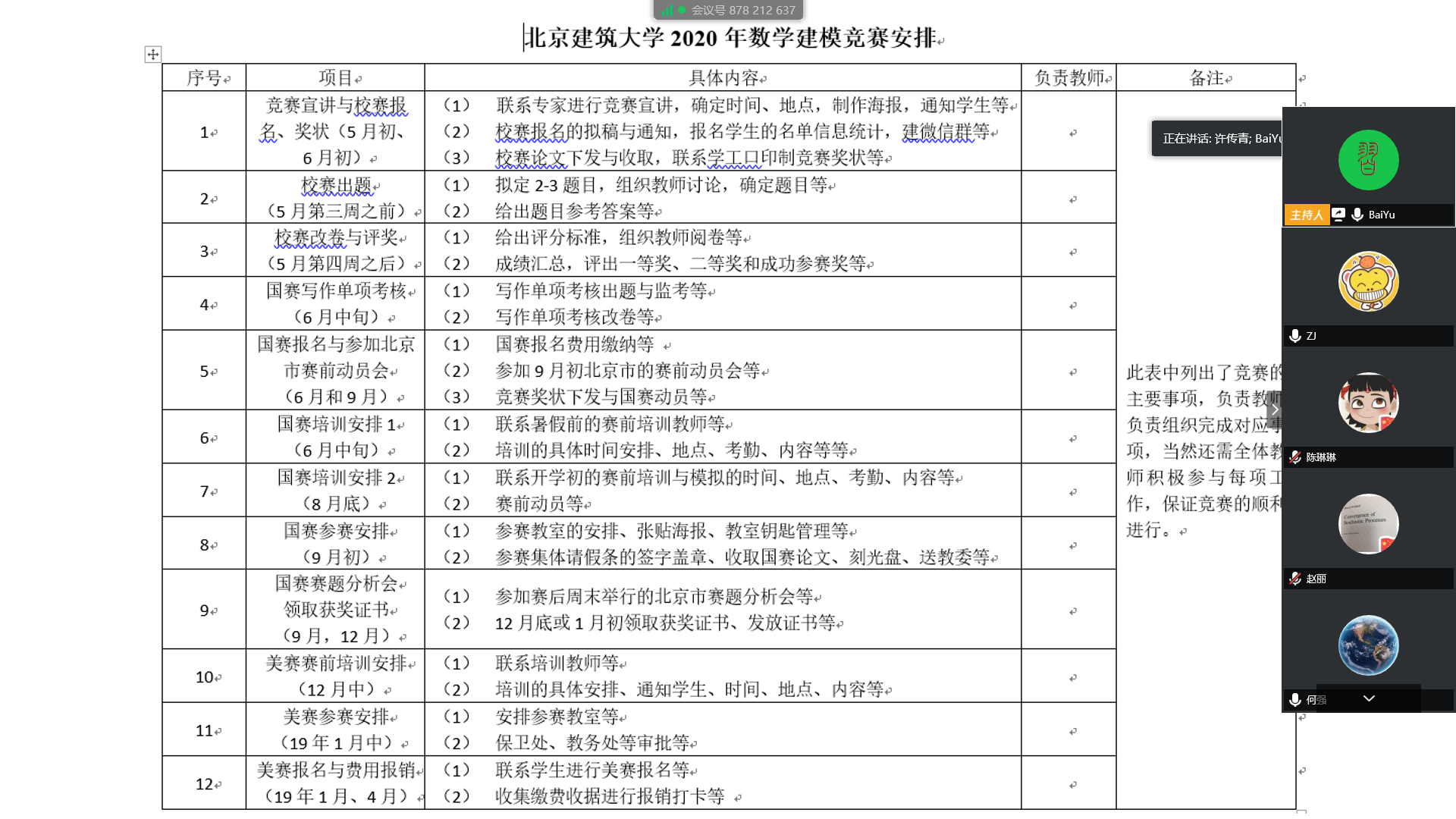 由于疫情的影响,员工没有到校学习,4月中旬248cc永利集团数学建模竞赛指导小组的老师们就专门召开线上会议,讨论是否如期举办校赛。老师们各抒己见,仔细分析了利与弊,最终达成了线上举办竞赛的一致意见,并讨论了具体的报名、出题、发题、收题、评审的细节。