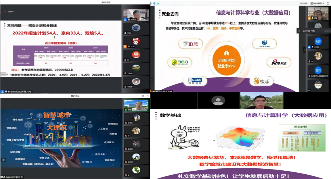 信息与计算科学(大数据应用)专业2022年的线上招生宣传咨询冲刺活动,不仅为考生和家长提供了便捷的服务,而且为专业提供了良好的展示平台,为生源质量的提升提供了保障。