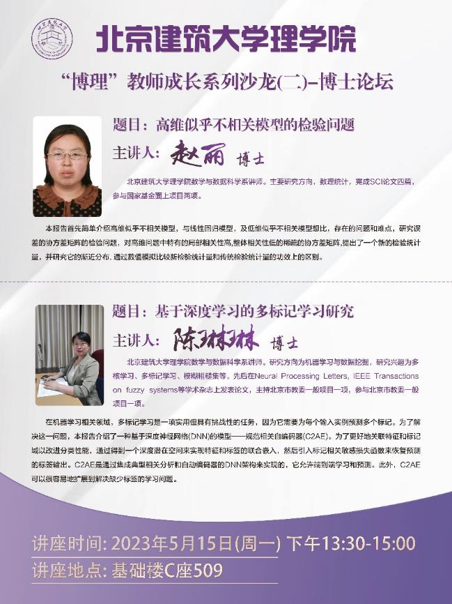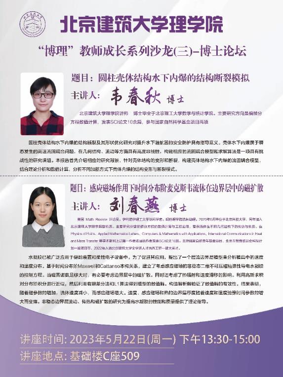 二是为青年教师搭建平台,提高教学科研能力。通过举办“博理”教师成长系列沙龙,青年博士老师分享科研、教学心得,互相启发互相促进;同时积极筹划用好“崔慧娟-北京高校青年教师创新教研工作室”平台,举办教学、科研经验分享,助力青年教师成长。