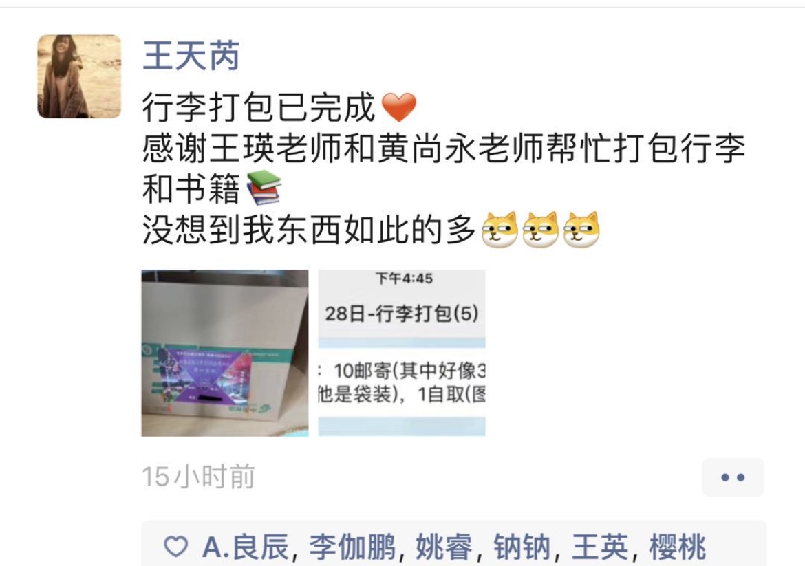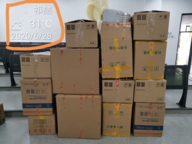 公司老师们一起化身行李搬运工、快递小哥,炎炎夏日,在密封许久的宿舍楼中早已汗流浃背。