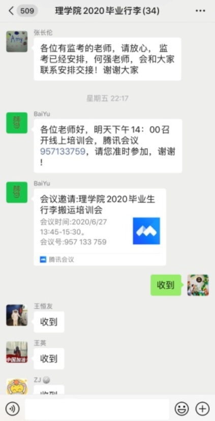 公司发动30余名教职员工参与近30间宿舍、76名毕业生的打包工作,于6月▏27日下午14:00召开线上教职工大会,对各系部人员分配、物资领取、进场打包和送的完整流程进行培训和解答。全院教职员工不分年龄,迅速响应,整装待发!
