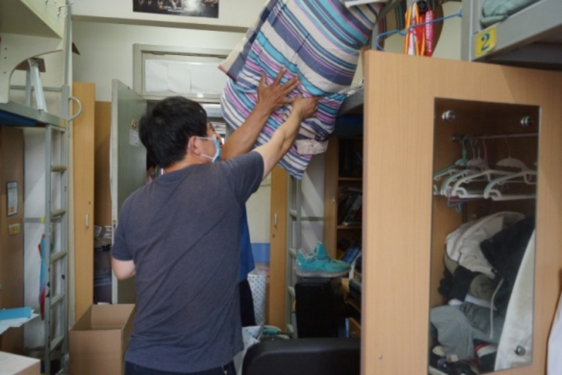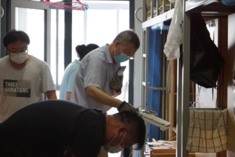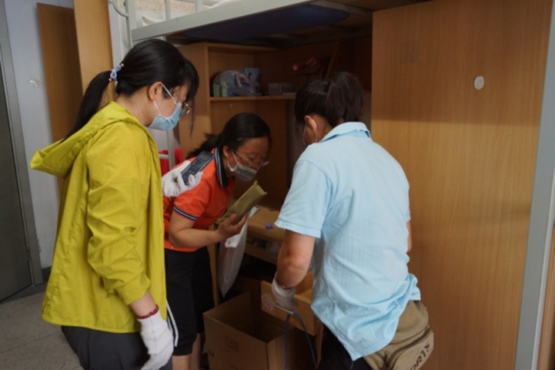 “同学,你看一下这是你的床铺”,“好的,这个我帮你装起来”,“跟你确认一下,这件物品暂存在学校”......面对每一名毕业生,都要仔细再仔细,确认再确认。真正做到一对一,点对点。