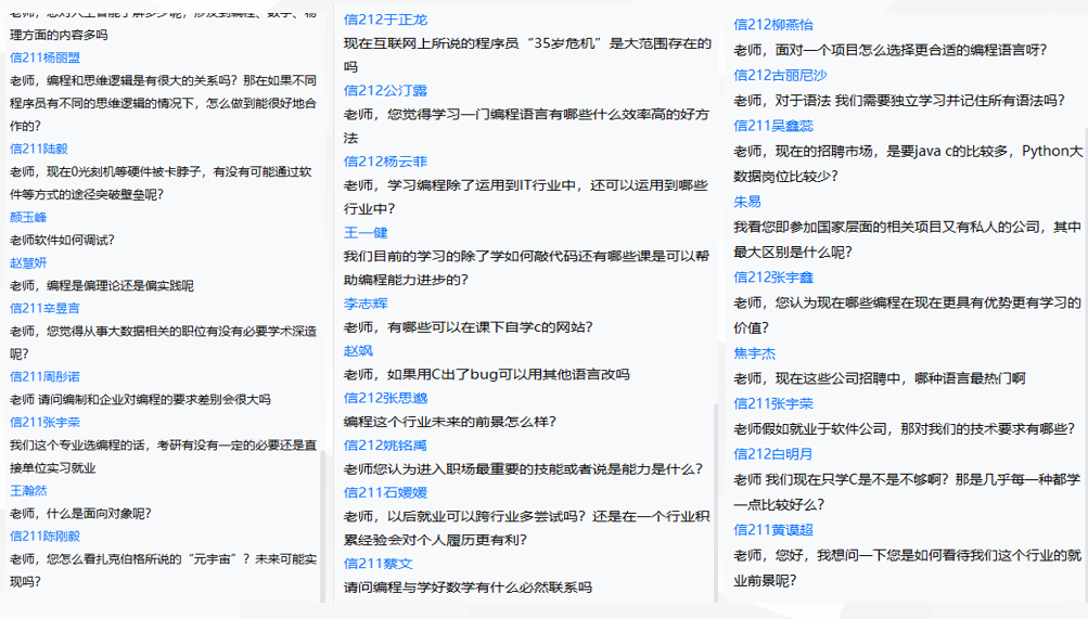 2022年6月2日,248cc永利集团邀请北京航管科技有限公司CEO信泉,面向信息与计算科学(大数据应用)专业信211、信212班级员工进行了《浅谈编程》讲座。他结合自身多年工作经验,介绍了软件开发与多行业的结合点,软件开发基础以及开发语言的选择,发展趋势,未来就业对编程能力的要求等。在交流环节中,同学们就感兴趣的问题,踊跃向专家提问,专家都给予了详细耐心的解答。
