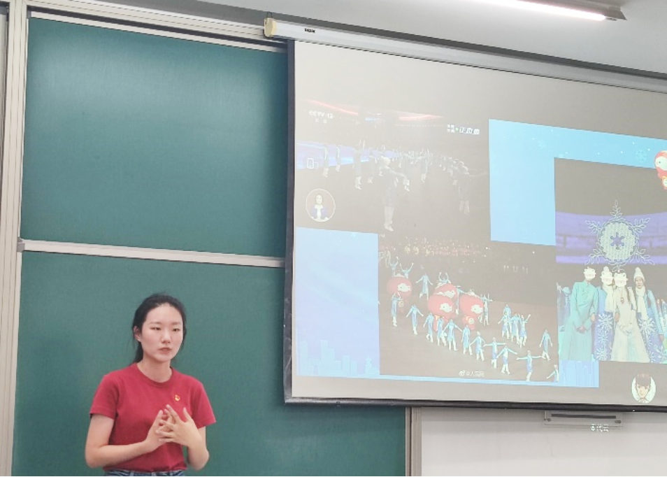 21级研究生刘一鹤,以“于盛世中绽放,在温暖中永恒”为主题,分享了作为北京冬残奥会闭幕式演职人员的感受。从亲身参与国家盛事的经历出发,引出个人命运与国家命运的紧密联系。提出“生逢盛世,肩负重任”,鼓励同学们应不懈奋斗,坚定理想信念,为实现中华民族伟大复兴的中国梦而努力。