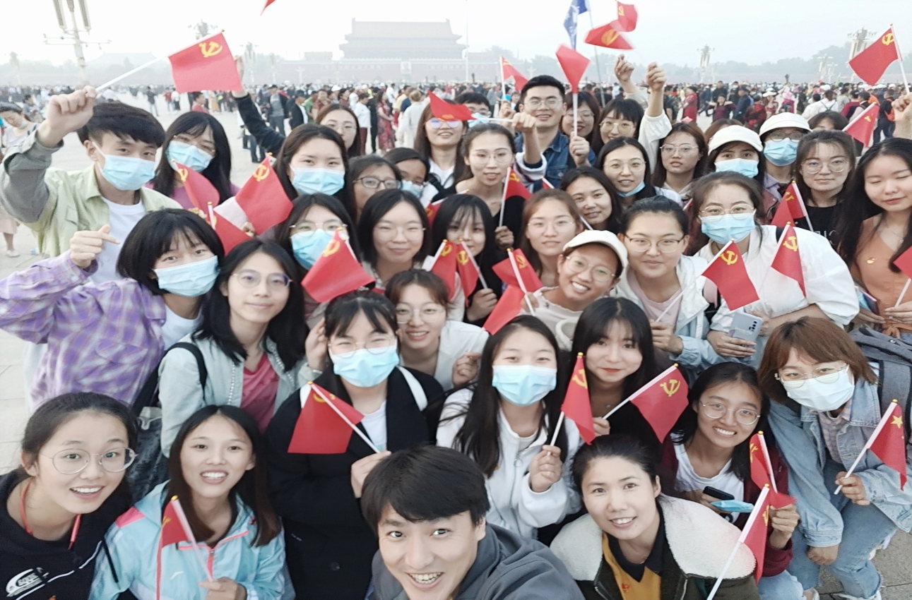 5月21日凌晨4点55分,当天安门广场响起雄壮的国歌,冉冉升起鲜艳的五星红旗,248cc永利集团研究生党支部41名党员佩戴党徽、神情庄重,集体向国旗行注目礼,同唱国歌。大家心情激动,燃起对伟大祖国的无限自豪和热爱之情,这是研究生党支部一次生动的爱国主义教育和深刻的党性教育活动现场。