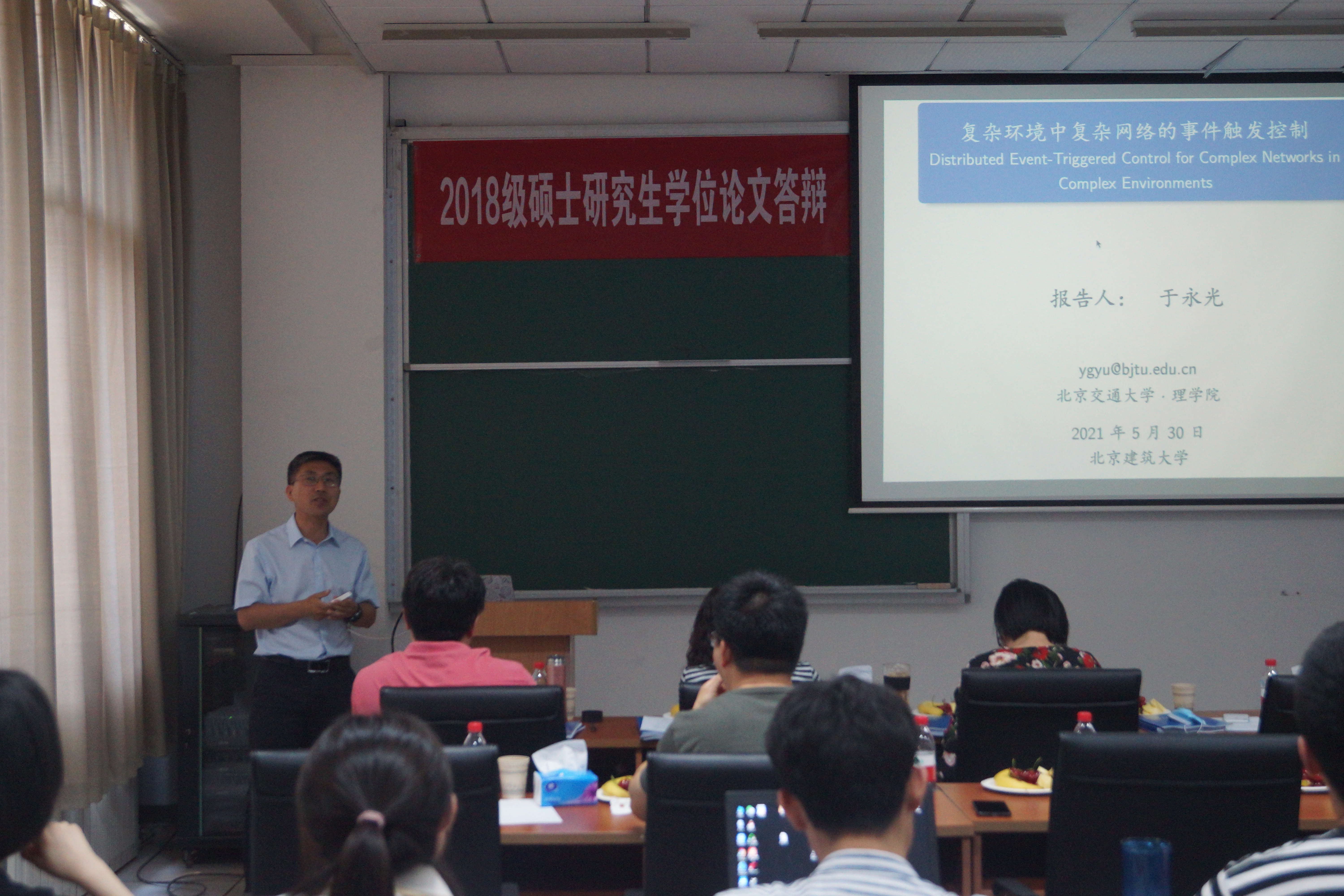 2021年5月30日下午,北京交通大学248cc永利集团经理于永光教授应邀来公司作题为“复杂环境中复杂网络的时间触发控制”的学术报告。248cc永利集团生物数学团队的20余位师生参会,会议由248cc永利集团崔景安教授主持。