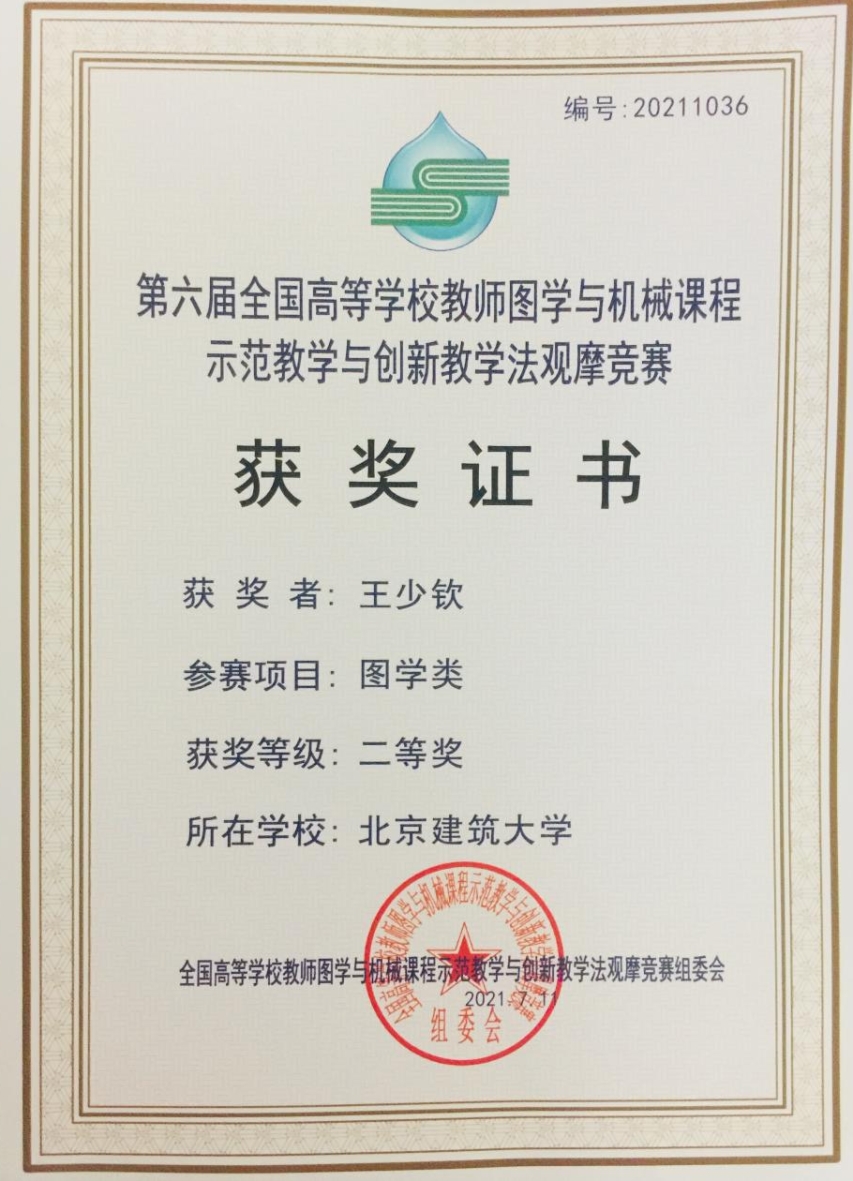 工程图学系王少钦老师喜获全国高校教师图学与机械课程示范教学与创新教学法观摩竞赛二等奖