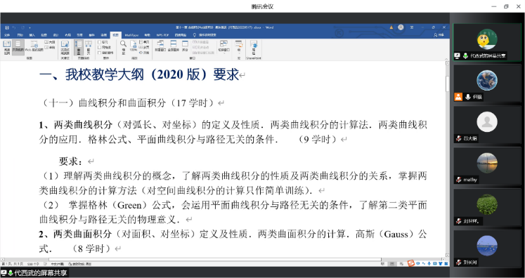 5月18日下午,高等数学教学团队线上开展了2022年春季学期的第三次集体备课,共同研讨《高等数学A(2)》第十一章的教学内容,并对本学期线上授课中的问题进行梳理。高等数学教学团队和青年教师参加了集体备课,会议由数学与数据科学系副主任何强老师主持。