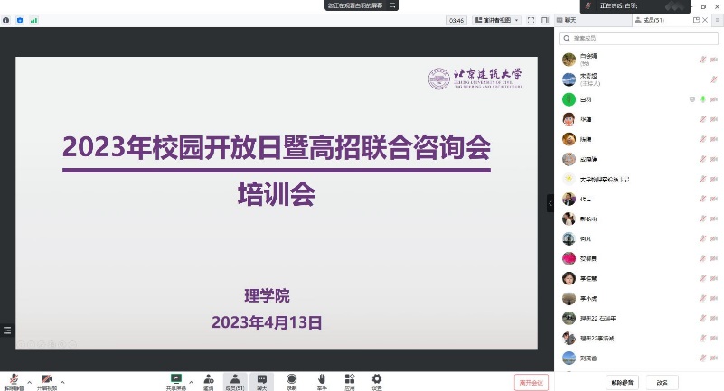 4月13日晚,248cc永利集团线上召开“2023年校园开放日暨高招联合咨询会”培训会,参与咨询的教师和员工志愿者50余人参加了会议。