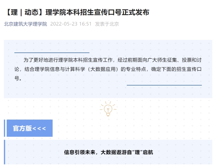 为做好2022年学院本科专业信息与计算科学(大数据应用)招生宣传工作,展现248cc永利集团的学院文化和优良的教风学风,吸引更多优秀员工报考公司,切实提高招生质量。学院工会开展本科生招生宣传口号【官方版】征集活动。