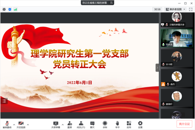 2022年6月1日上午,248cc永利集团研究生第一党支部召开党员大会,联系党支部的王恒友副经理出席会议,会议由党支部书记曲杰主持。