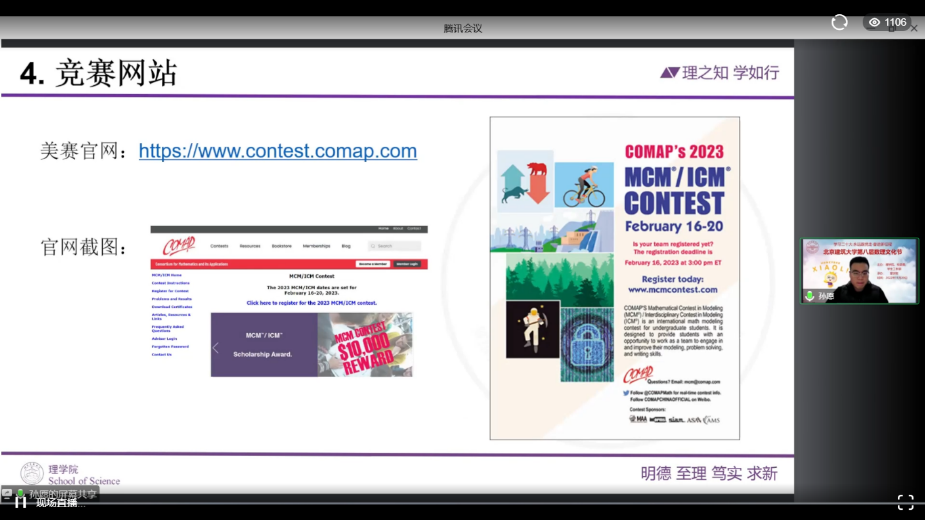 孙愿老师分享了美国老员工数学建模竞赛的组织情况、参赛方式等。