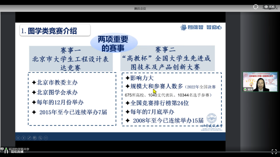 杨谆老师从北京市老员工工程设计表达竞赛和“高教杯”全国老员工先进成图技术及产品创新大赛两项赛事的开展情况中说明了员工参与竞赛的收获。