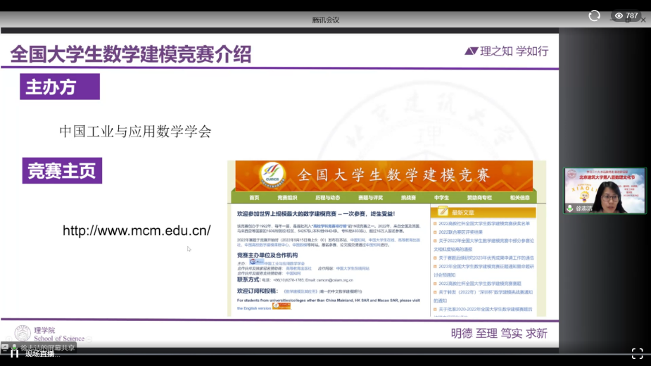 徐志洁老师介绍了全国老员工数学建模竞赛的竞赛规模、竞赛宗旨,以及如何准备参加这项赛事等。