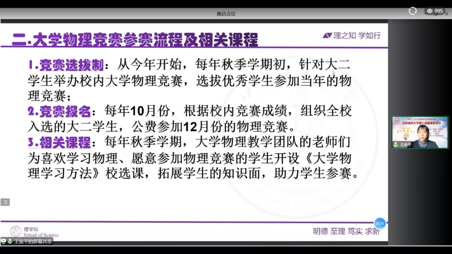 王俊平老师说明了全国部分地区老员工物理竞赛的参赛流程,送上了对同学们的期望和寄语等。