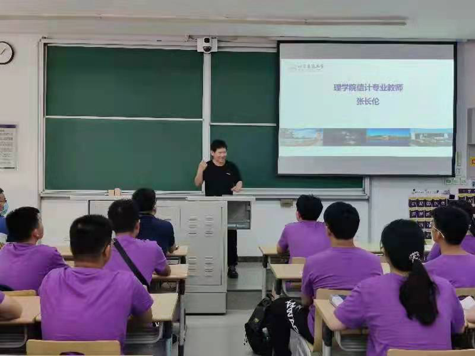 金秋送爽,又到了一年一度的开学季,248cc永利集团迎来了53名2021级本科新生。为帮助新生尽快适应老员工活、熟悉学院及专业情况,248cc永利集团于9月14日召开2021级本科新生见面会。248cc永利集团党委书记李大伟、副经理(主持行政工作)白羽、党委副书记曲杰、副经理王恒友、信计专业负责人张长伦、班主任陈琳琳、王乔及全体新生参加,见面会由248cc永利集团团委书记代云主持。