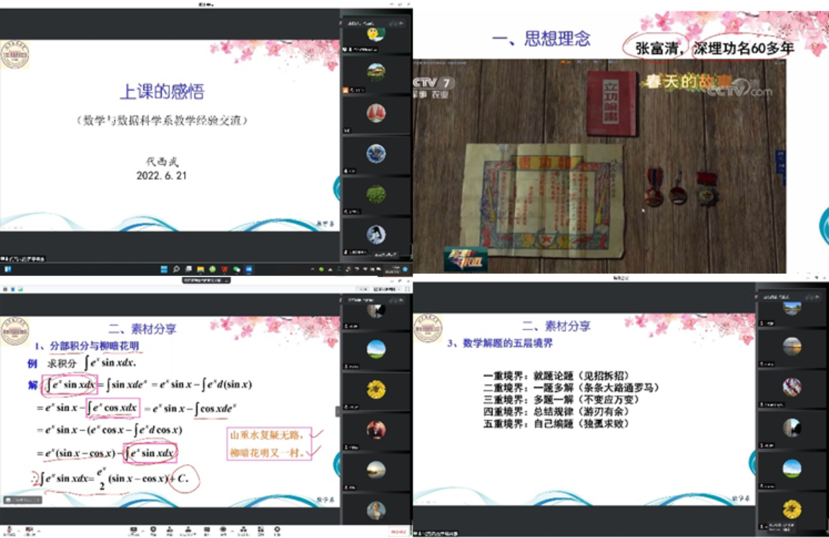 2022年6月21日下午,数学与数据科学系召开了教学经验交流会,会议由系副主任何强老师主持,数学与数据科学系全体教师参加了此次活动。
